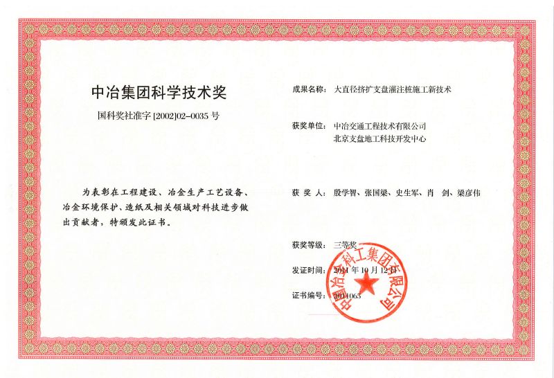 中冶集團科學(xué)技術(shù)獎集擠擴支盤
