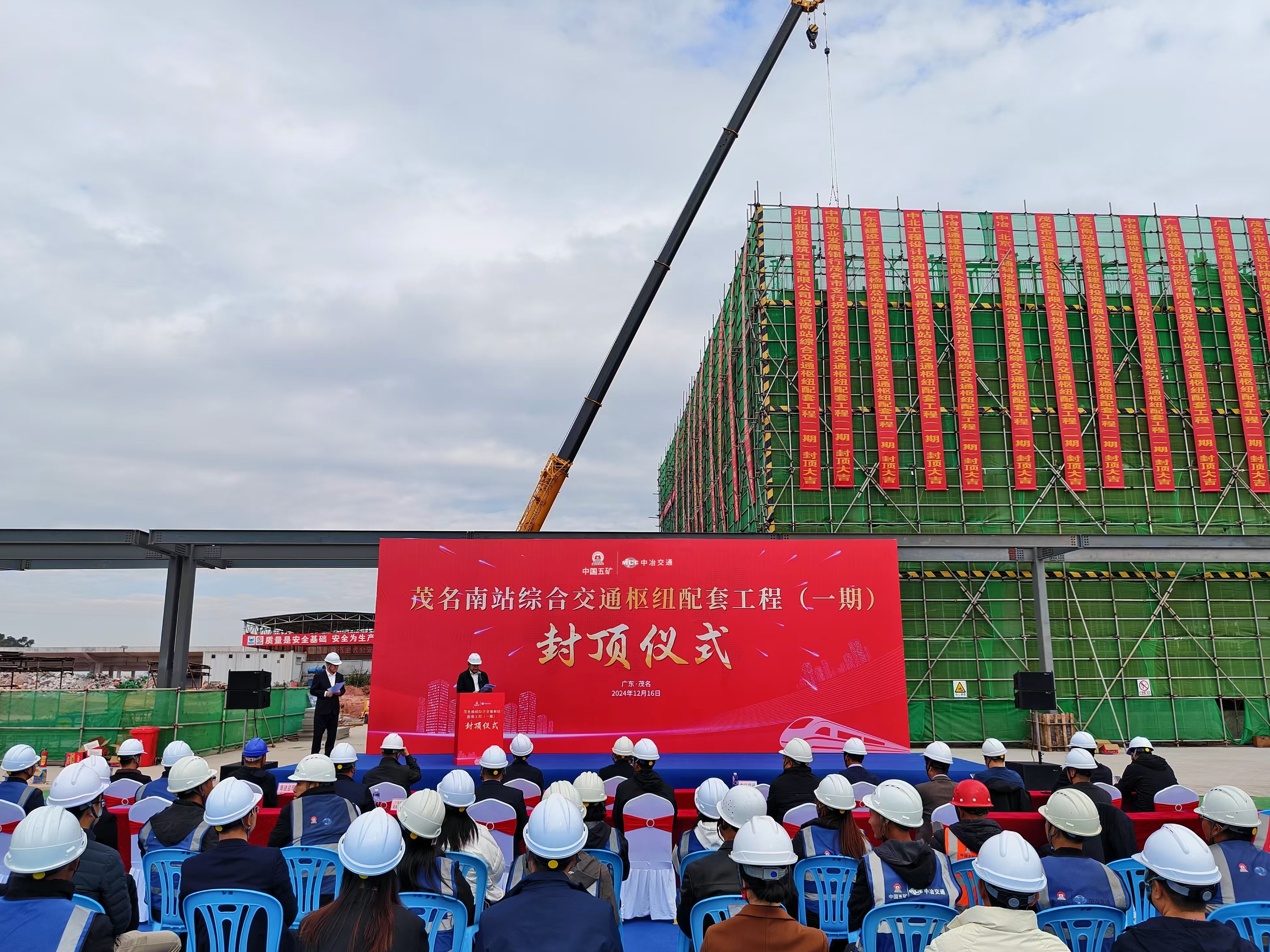 12月16日,由中冶交通承建的茂名南站綜合交通樞紐配套工程(一期)項目舉行主體封頂儀式,公司黨委副書記文建國參加儀式并致辭。