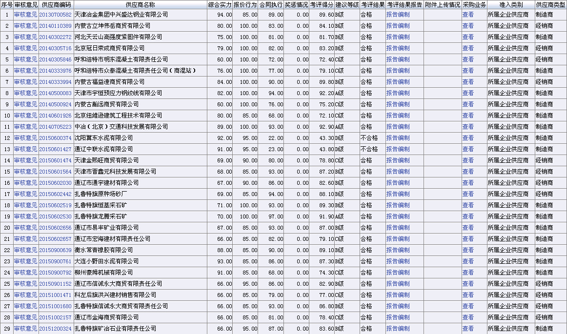 供應(yīng)商綜合實力、報價響應(yīng)、合同履約能力及獎罰情況。