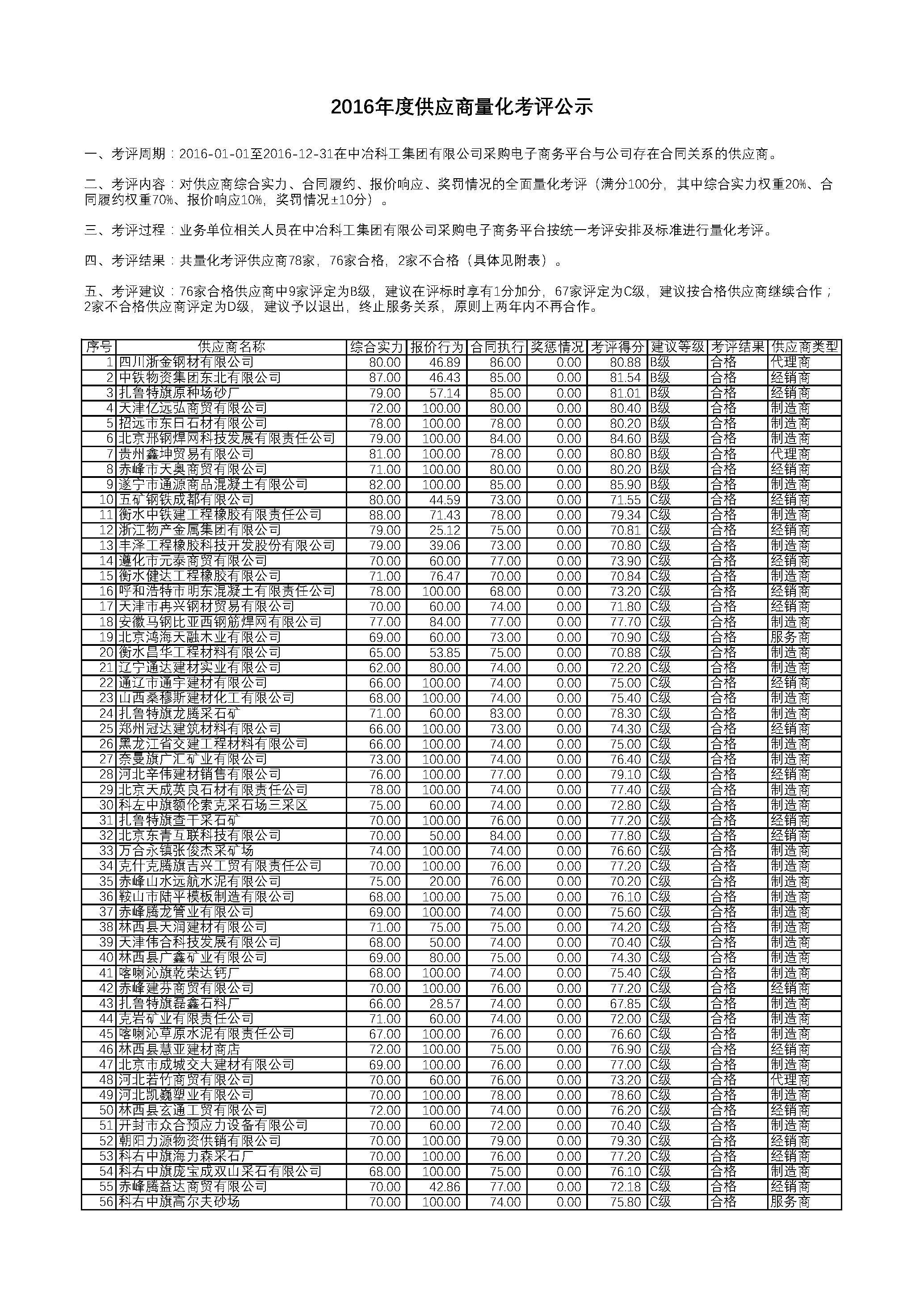 2016年度供應(yīng)商量化考評結(jié)果公示